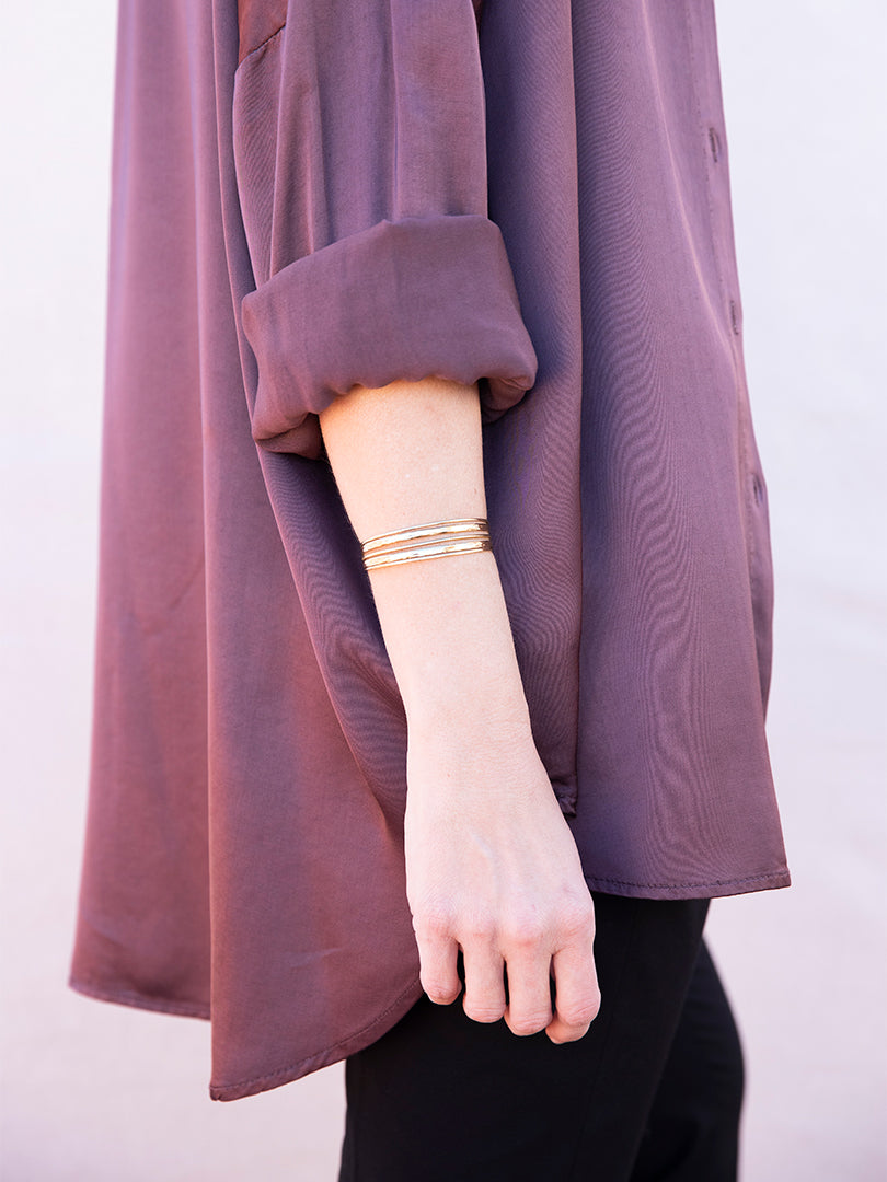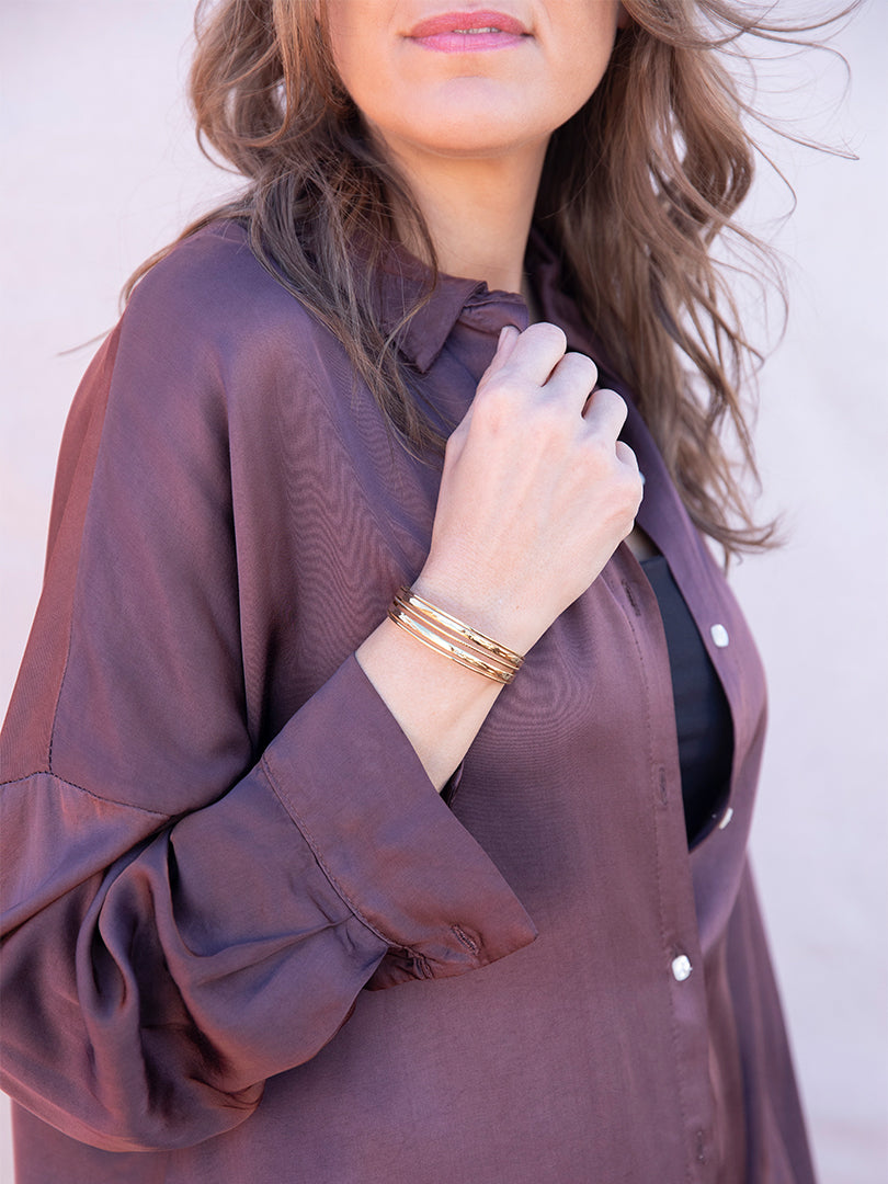 Brazalete Briana, brazalete de tiras, en tono dorado y muy ligero, súper estiloso y elegante. para todos los días.
