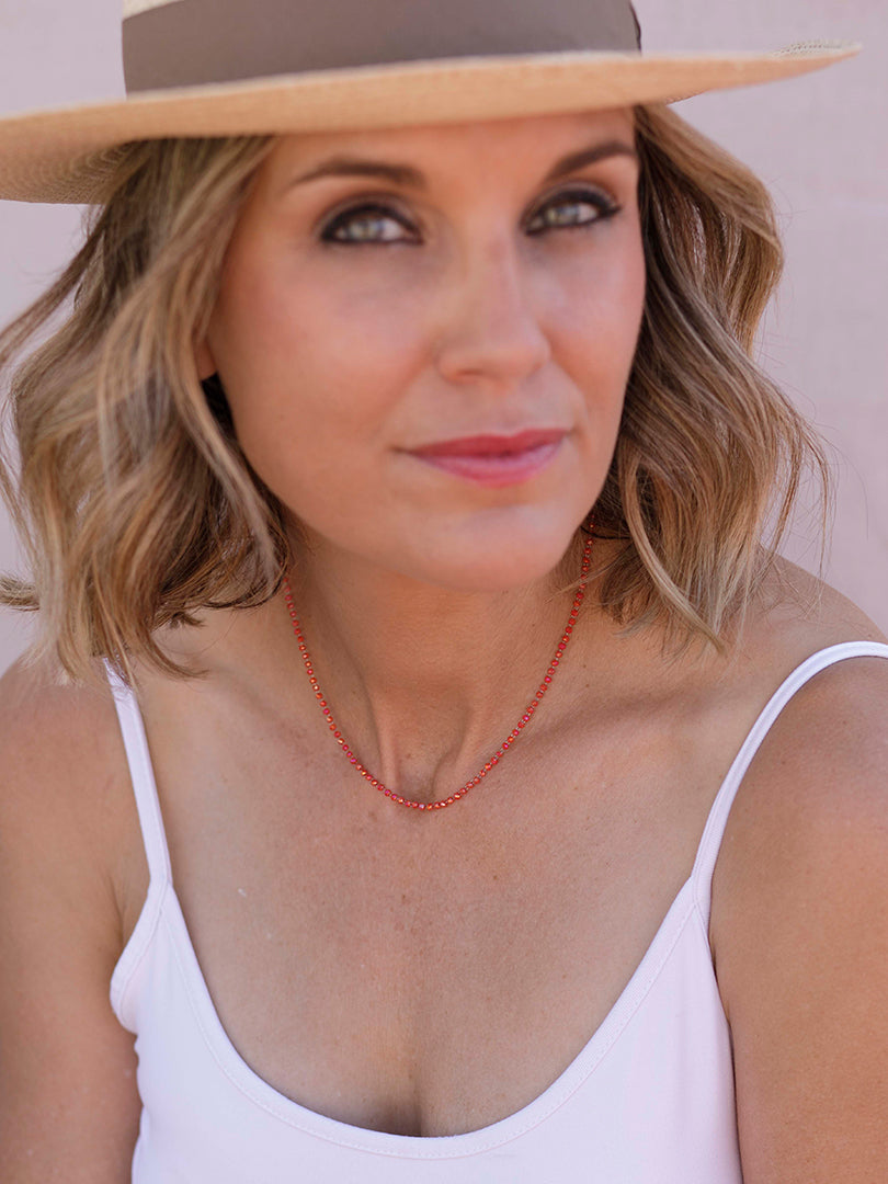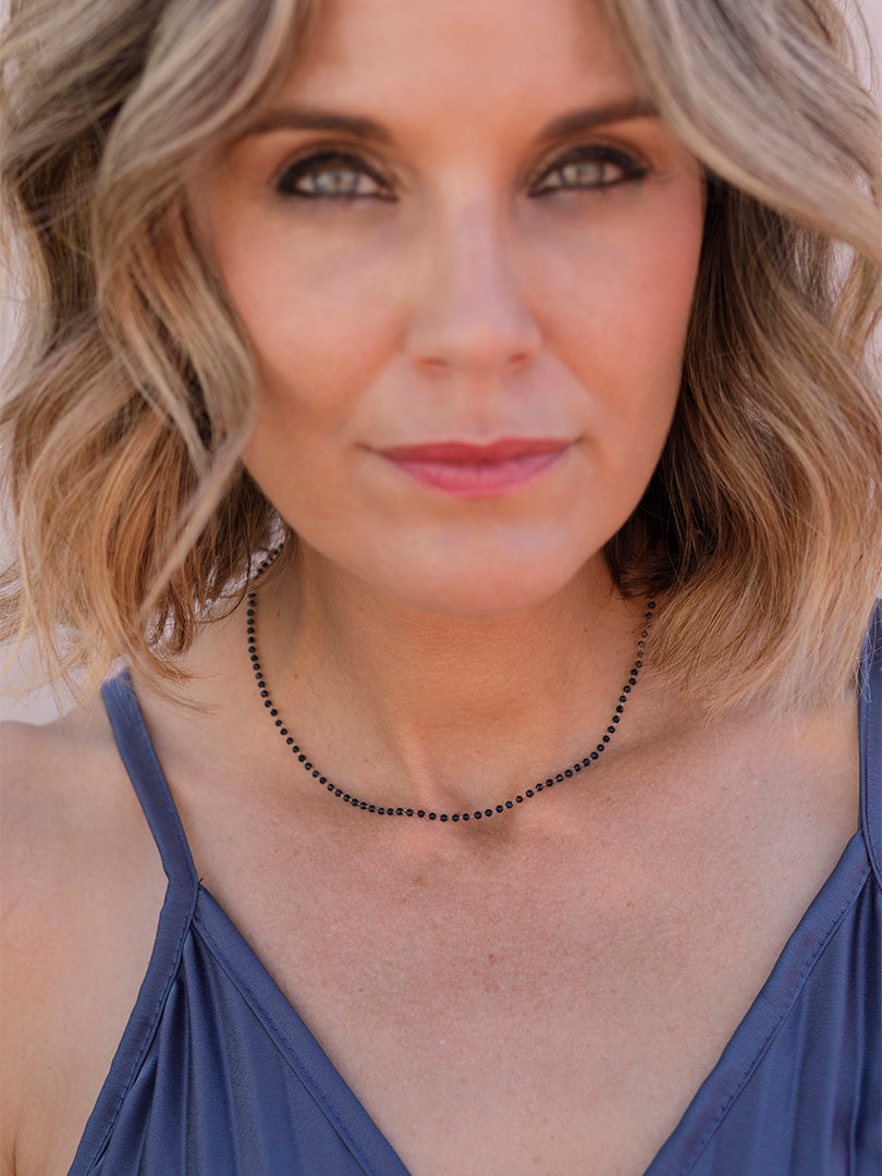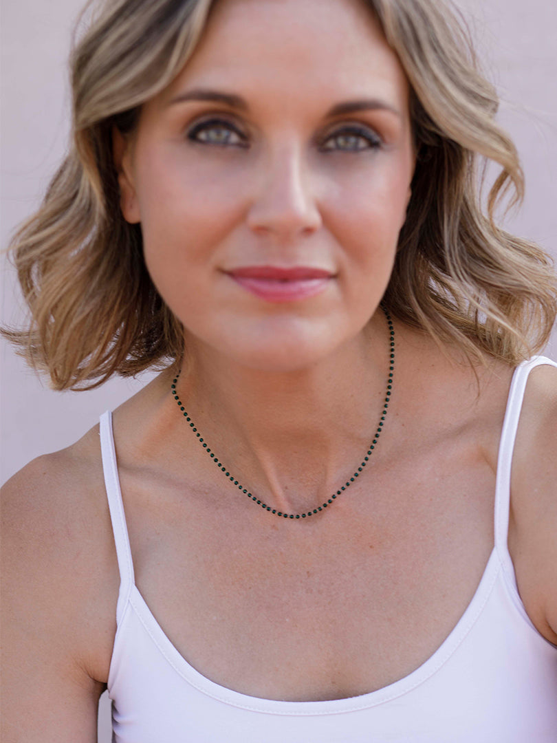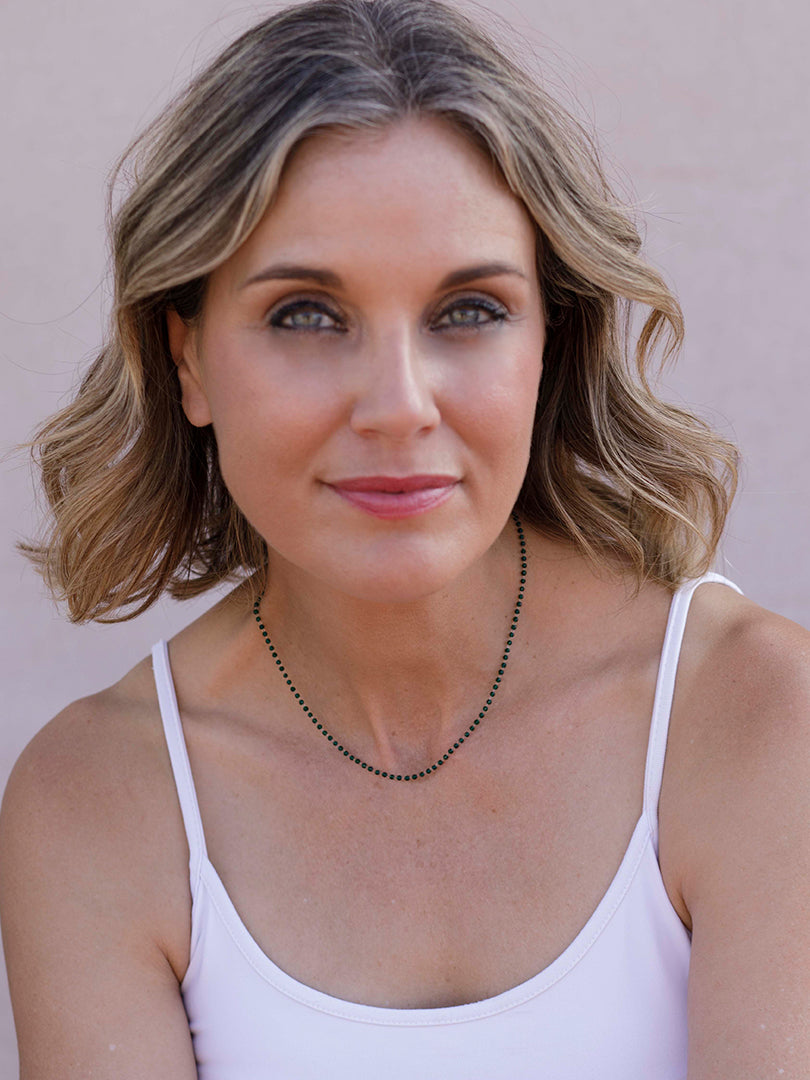 Candela , si eres una enamorada de las piezas delicadas éstas son un "lujo minimalista" al ser cristales tan extremadamente pequeños el efecto es de un hilo de luz y color que enmarca el cuello con muchísima elegancia. buscábamos 26crear una pieza que no se sintiera, pero si se viera, joyería que no recarga y complementa la belleza natural