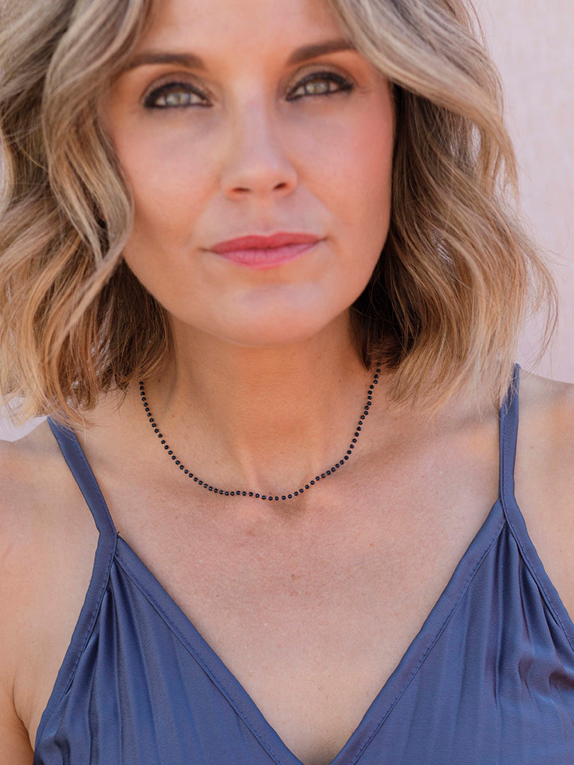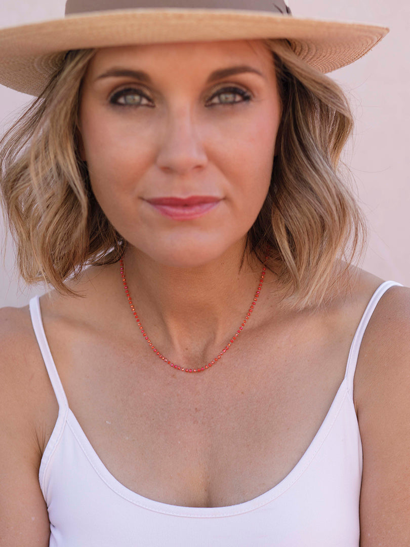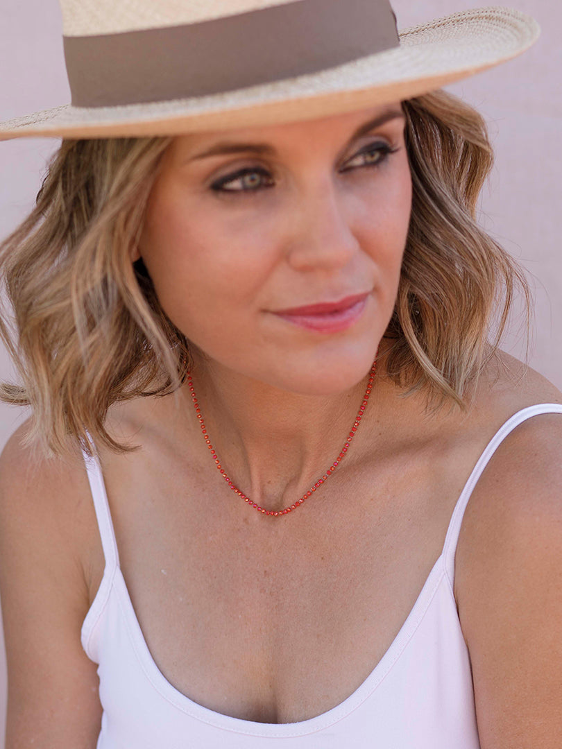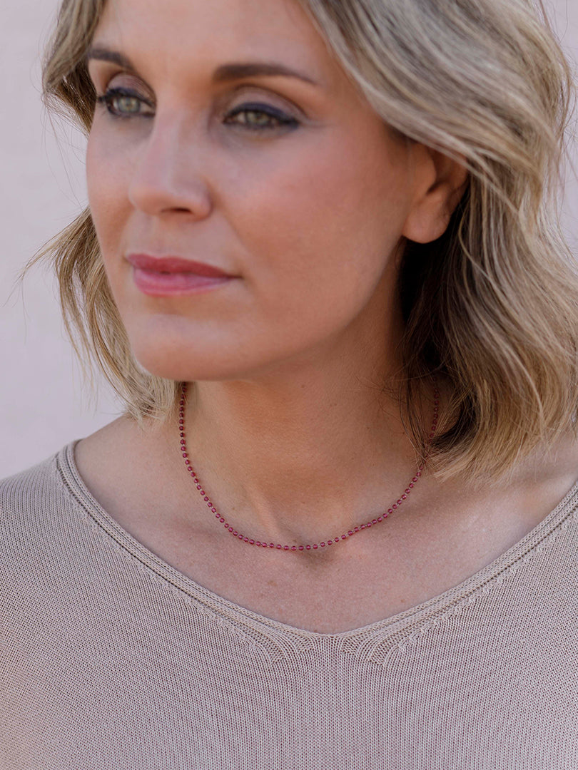 Candela , si eres una enamorada de las piezas delicadas éstas son un "lujo minimalista" al ser cristales tan extremadamente pequeños el efecto es de un hilo de luz y color que enmarca el cuello con muchísima elegancia. buscábamos 26crear una pieza que no se sintiera, pero si se viera, joyería que no recarga y complementa la belleza natural